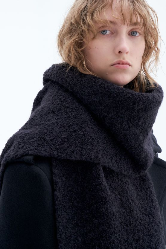 Bufanda en mezcla de lana de alpaca con suave textura boucle. Úselo con piezas tonales para una apariencia monocromática. diseño unisex.