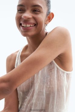 Camiseta sin mangas delgada con cuello redondo en un tejido reciclado con una delicada superficie arrugada transparente. Combínalo con la falda de tubo arrugada para un look de noche coordinado.