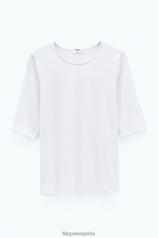Esta pieza es parte de nuestra colección principal de prendas básicas permanentes en el guardarropa. top ajustado confeccionado con algodón ocs. Diseñado con escote redondo y mangas hasta el codo. tejer en portugal.