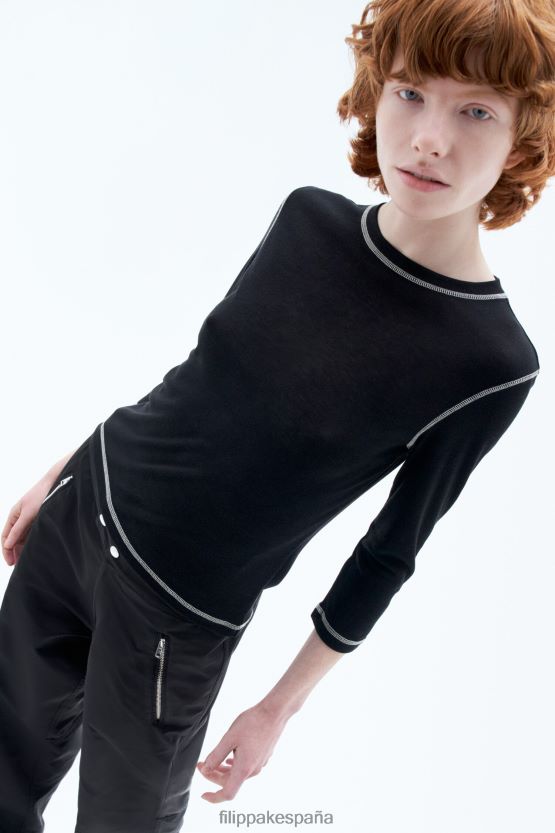 Top fino de lana en una mezcla de tencel y cachemir con costuras en contraste inspiradas en el esquí.