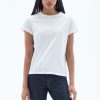 Esta pieza es parte de nuestra colección principal de prendas básicas permanentes en el guardarropa. Camiseta de tencel con cuello ancho y manga corta extendida.