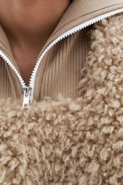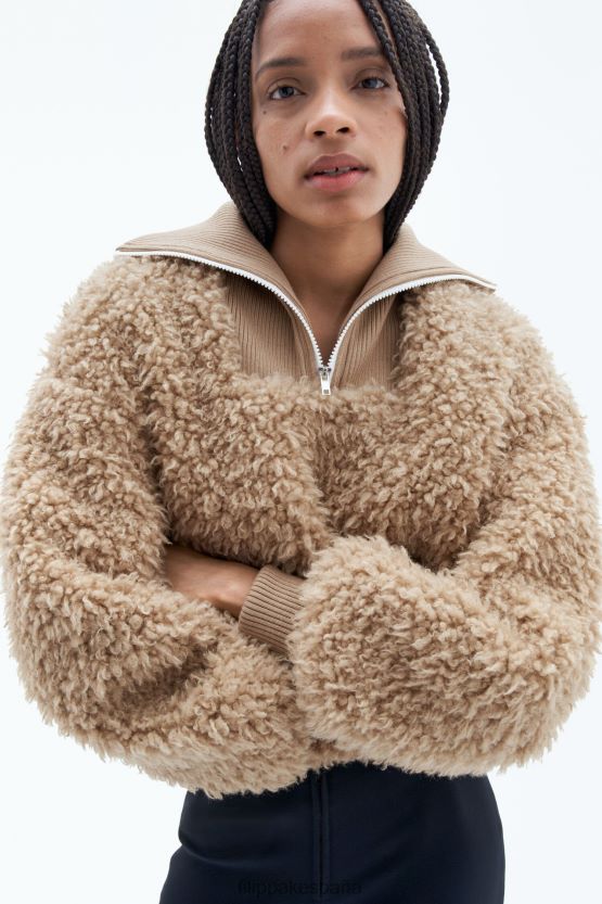 vestir 262DTJ16 arena beige mujer Filippa K chaqueta de piel sintética con media cremallera