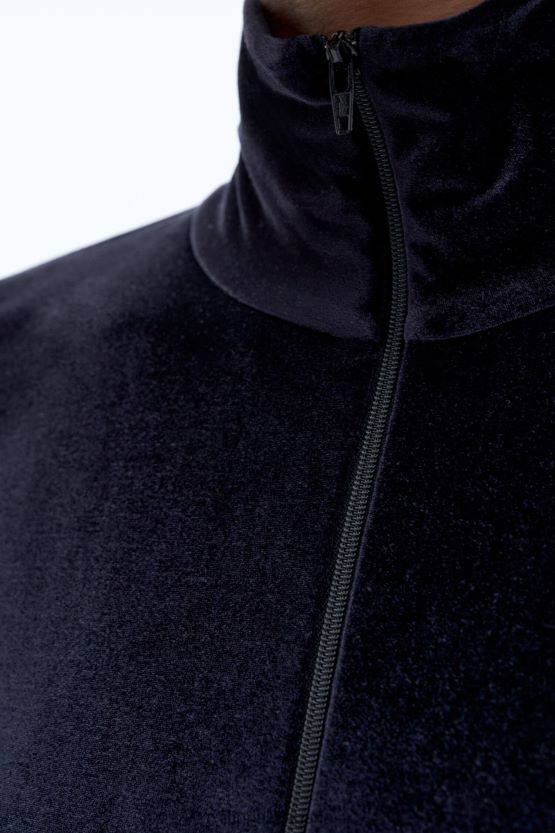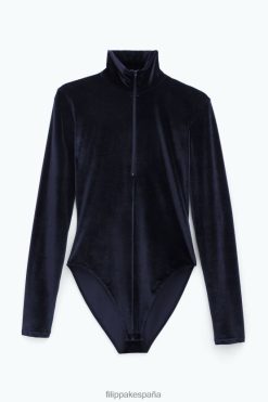 Body ajustado con cuello alto en punto de terciopelo elástico. Diseñado con una abertura con cremallera en el centro del frente y cierre de botón a presión en la entrepierna.
