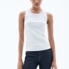 Camiseta sin mangas con cuello en V confeccionada en punto tencel, una fibra suave de Lenzing creada a partir de pulpa de madera.