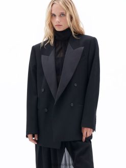 Blazer de esmoquin cruzado de lana con solapas de raso. Diseñado con un ajuste de gran tamaño.