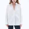 Camisa oversize con hombro caído y dobladillo extendido en la espalda. Confeccionado en popelín de algodón orgánico con acabado sedoso. Vístelo con pantalones entallados o con mezclilla clásica.
