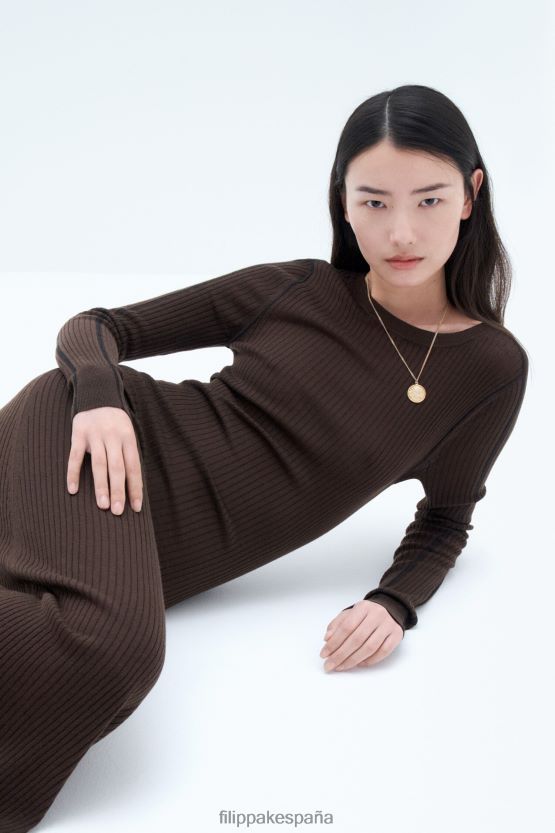 vestir 262DTJ213 chocolate oscuro/negro mujer Filippa K vestido de punto de canalé