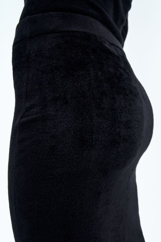 Falda de punto entallada con hilo de chenilla italiana acanalada. Combínalo con el suéter de cuello alto de chenilla para un conjunto minimalista.