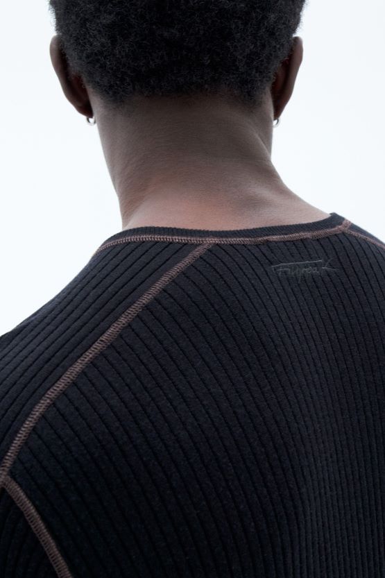 Jersey fino y ligero en punto acanalado en una mezcla de tencel, lana y seda. detallado con costuras en contraste inspiradas en la ropa básica de esquí clásica.