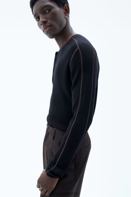 vestir 262DTJ265 marrón oscuro hombres Filippa K suéter de canalé ligero