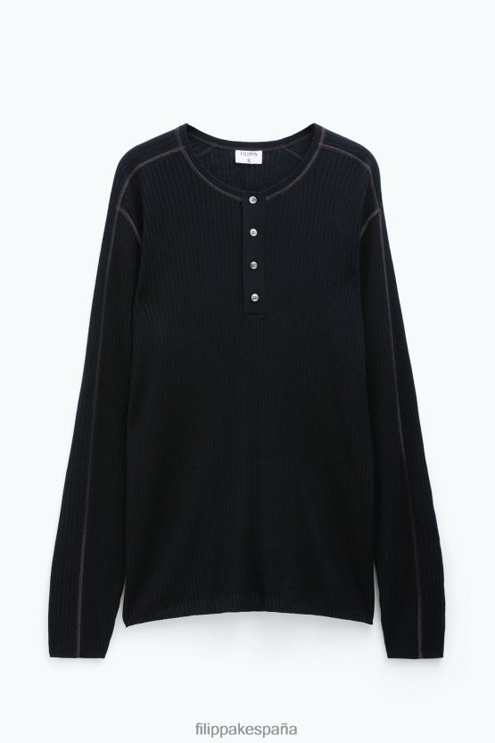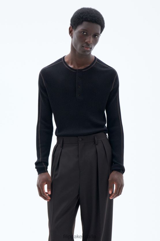 vestir 262DTJ278 negro hombres Filippa K cuello redondo pesado