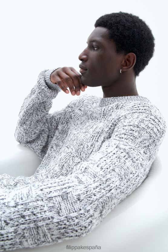 vestir 262DTJ279 blanco negro hombres Filippa K suéter de punto cuadrado