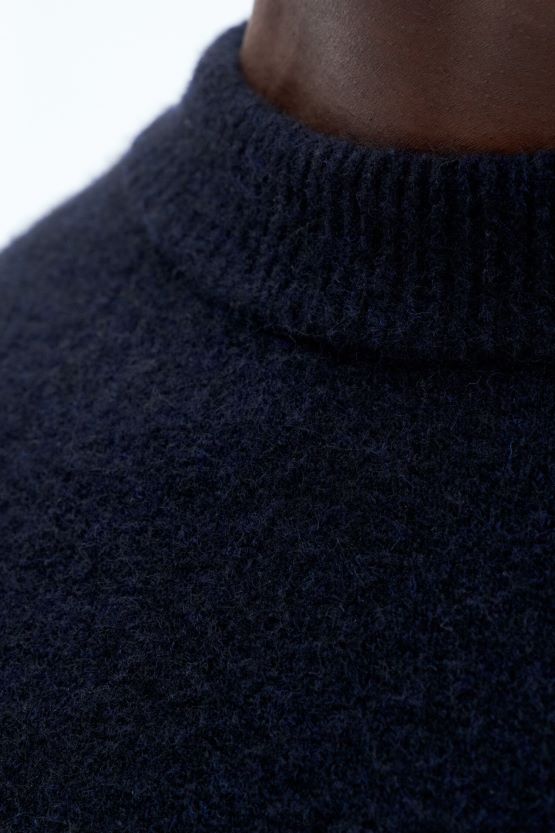 Jersey suave en mezcla de lana de yak con pronunciado cuello redondo de doble canalé. Perfecto como elemento básico del guardarropa diario durante el otoño y el invierno.