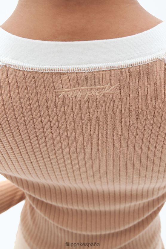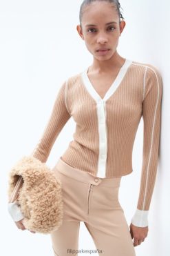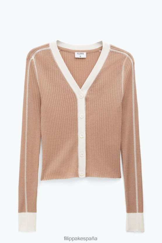 vestir 262DTJ35 camello/blanco mujer Filippa K cárdigan de canalé ligero
