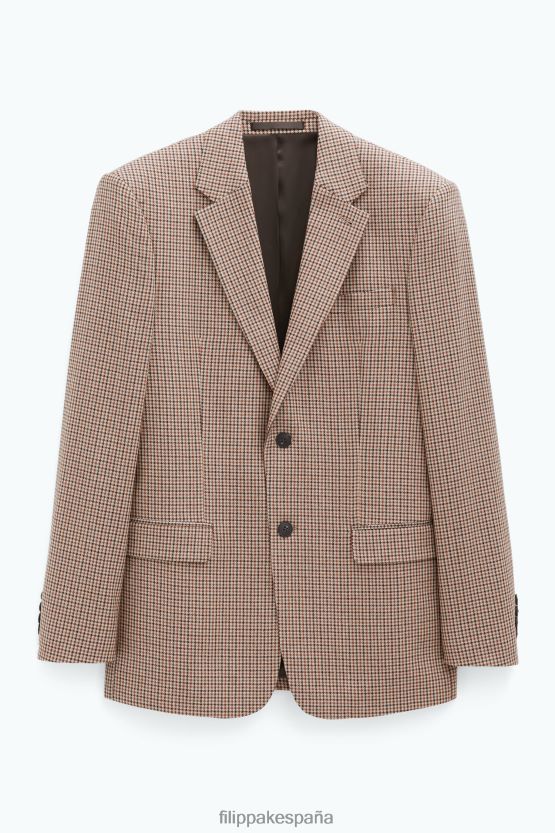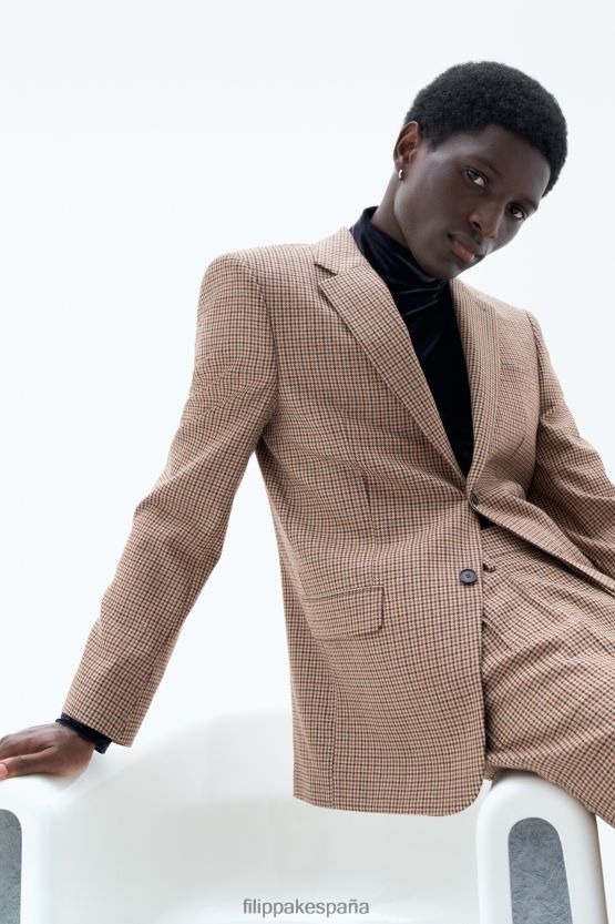 vestir 262DTJ351 beige arena/cuadros marrón hombres Filippa K blazer a cuadros con botonadura sencilla