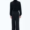 Pantalón sastre en lana merino no elástica con pernera ancha y detalle de pliegues que aporta volumen. Úselos con un jersey de cuello alto neutro o combínelos con el blazer de lana cuadrado coordinado para lograr una silueta de traje llamativa.