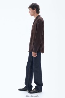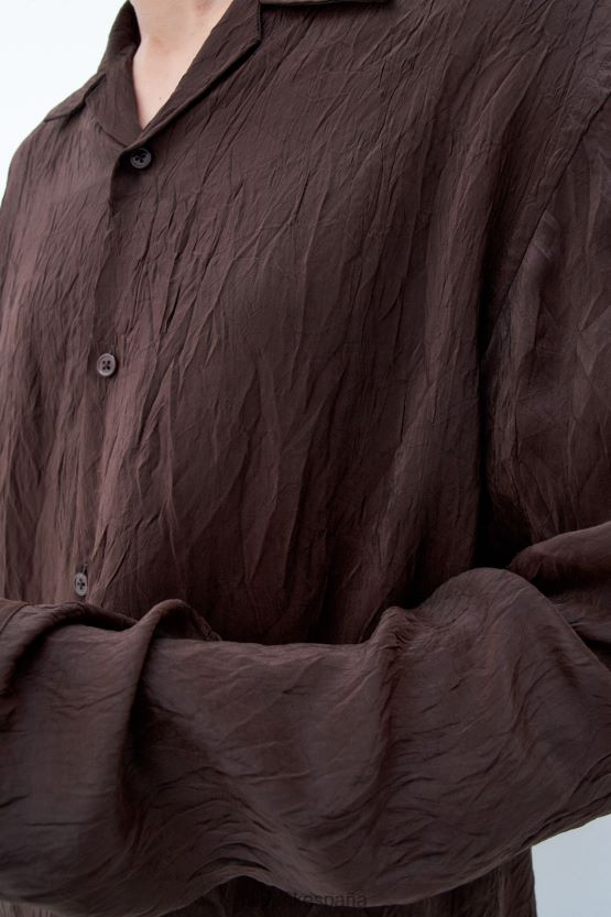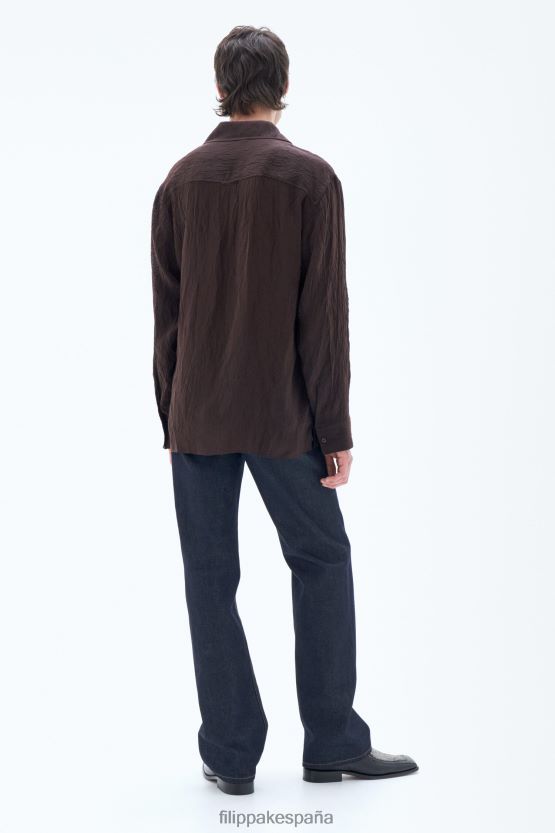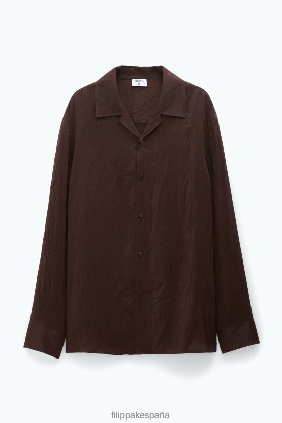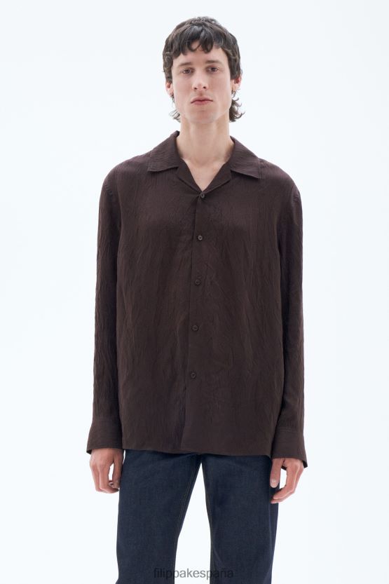 vestir 262DTJ399 chocolate negro hombres Filippa K camisa resort arrugada