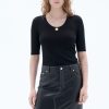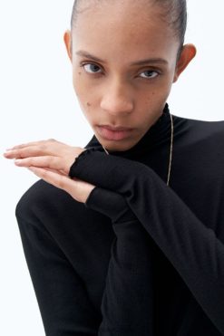 Top ajustado con cuello alto en una suave mezcla transparente de tencel y lana con bordes ligeramente volados. Úselo en capas debajo de prendas de punto o por dentro de faldas y pantalones de cintura alta.