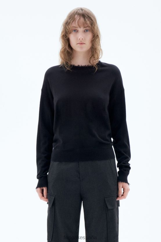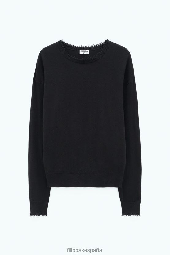 vestir 262DTJ62 negro mujer Filippa K top deshilachado con cuello en V