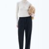 Pantalón sastre en mezcla de lana reciclada no elástica, tejido en Italia. diseñado con una cintura ligeramente baja que llega a la cadera y un ajuste relajado en el muslo, con un largo alargado y una silueta con corte tipo bota. estilo con una blusa neutra y la chaqueta de botonadura simple coordinada para un traje de pata de gallo de pies a cabeza.