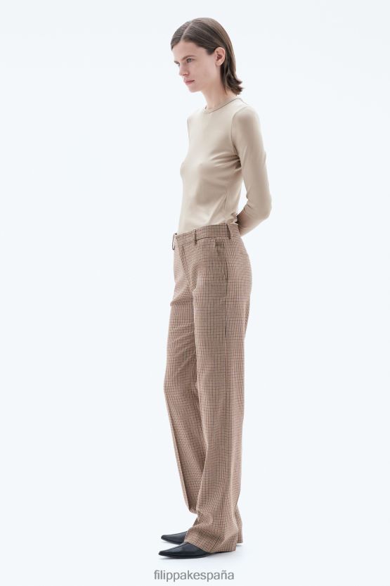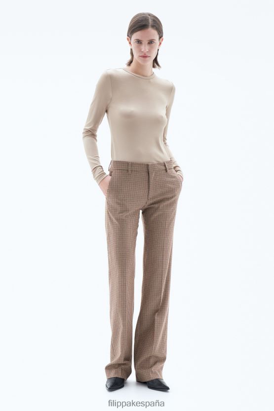 vestir 262DTJ114 beige arena/cuadros marrón mujer Filippa K pantalones bootcut a cuadros