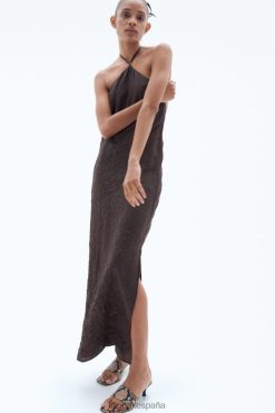 vestir 262DTJ207 chocolate negro mujer Filippa K vestido arrugado con espalda profunda