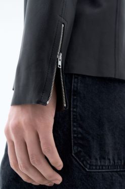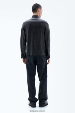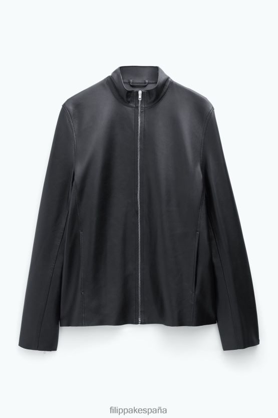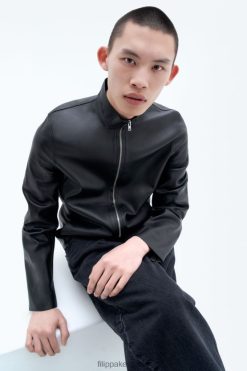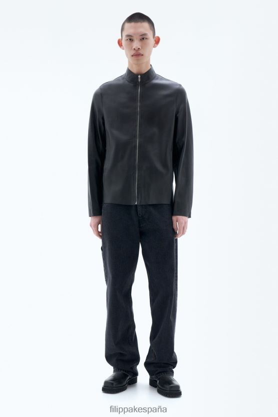 vestir 262DTJ259 negro/verde humo hombres Filippa K chaqueta de cuero con cremallera