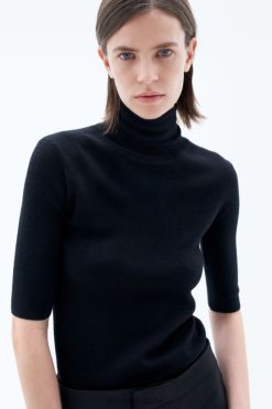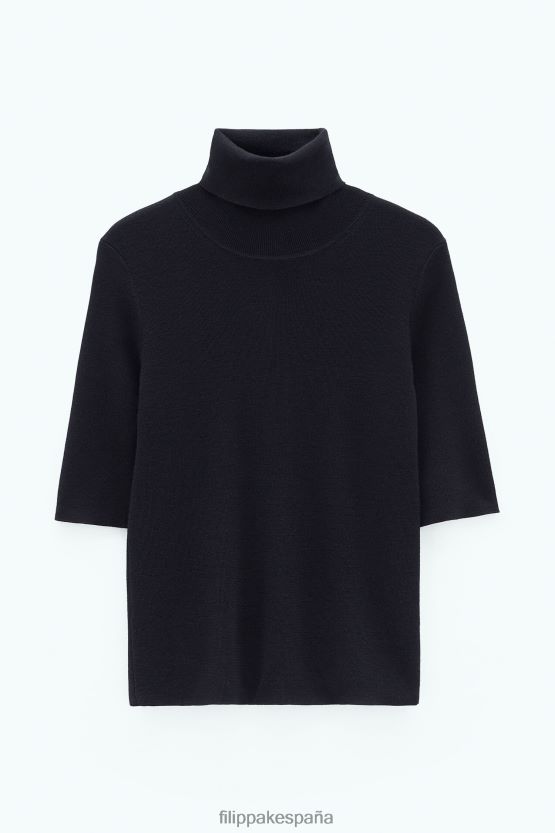 vestir 262DTJ29 negro mujer Filippa K top de merino con mangas al codo