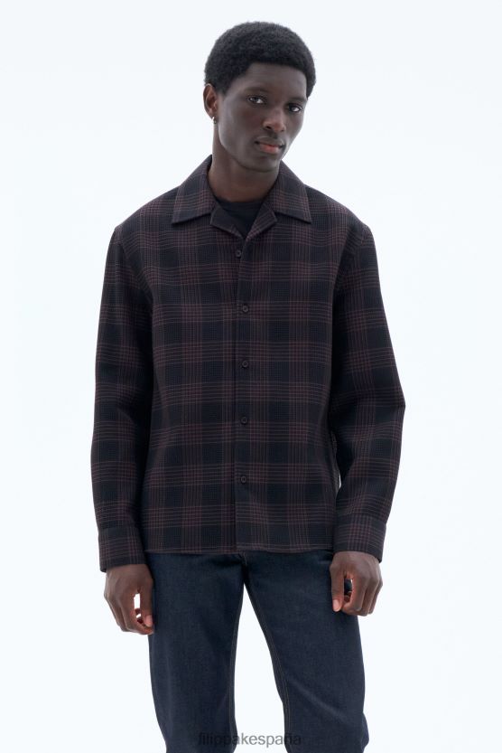 vestir 262DTJ383 chocolate oscuro/cuadros negros hombres Filippa K camisa resort a cuadros tipo waffle