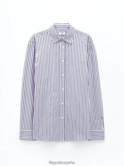 vestir 262DTJ393 azul pacífico/raya blanca hombres Filippa K camisa de algodón a rayas