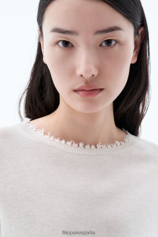 vestir 262DTJ59 Marfil mujer Filippa K top deshilachado con cuello en V