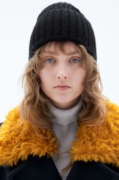 Esta pieza es parte de nuestra colección principal de prendas básicas permanentes en el guardarropa. Gorro de punto acanalado en mezcla de cachemir con diseño plegable.